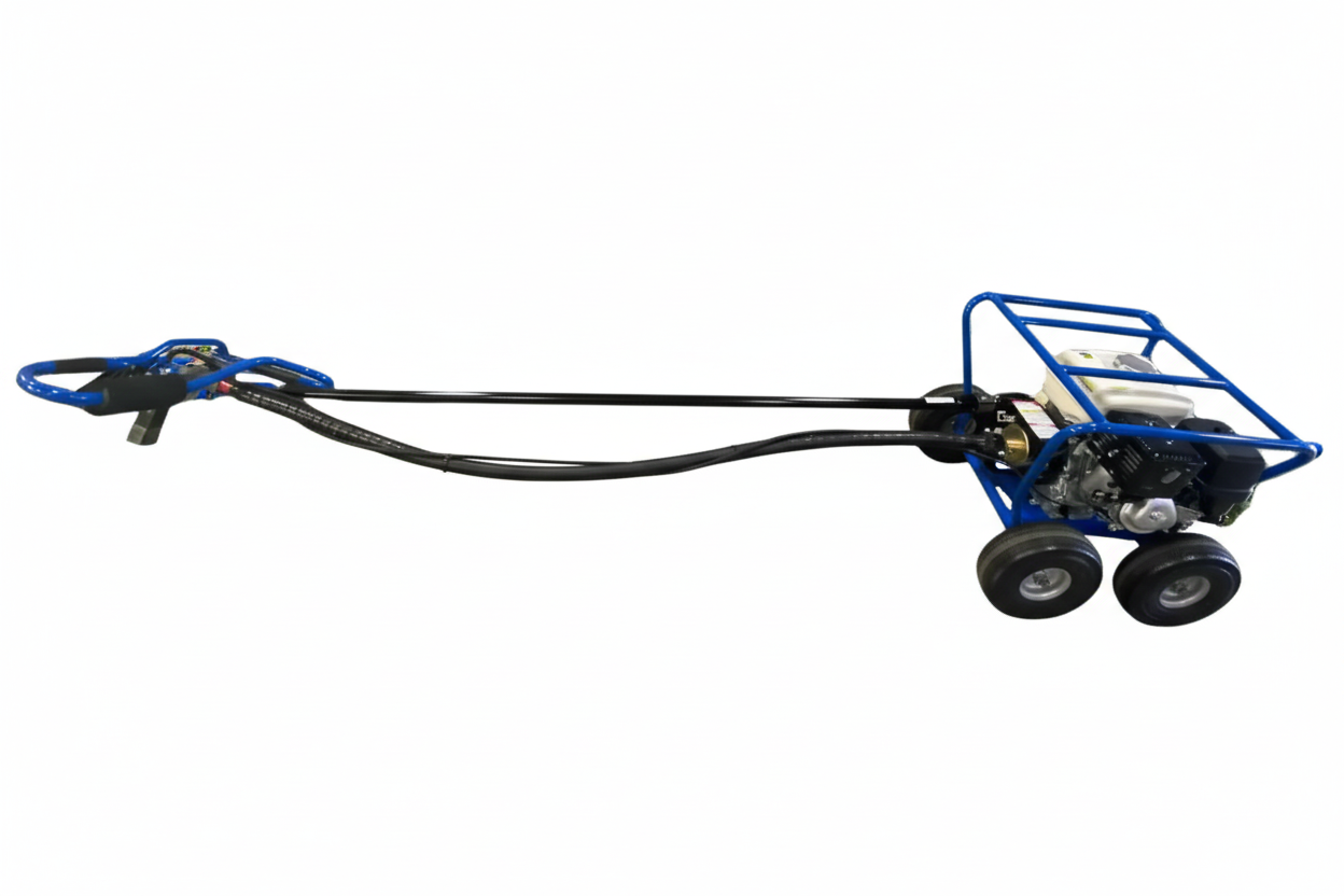 Post hole digger features a high horse-power Honda engine with 10-inch pneumatic tires. Includes a roll cage.